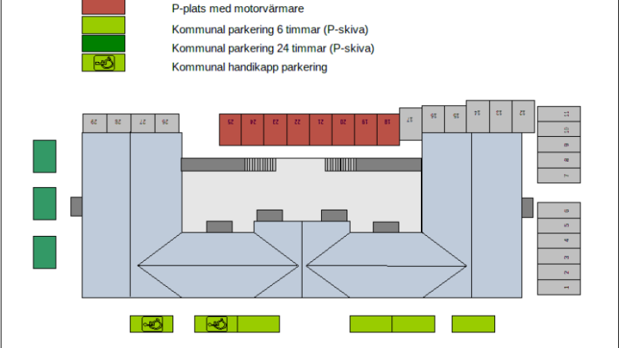Kommunal parkering med P-skiva finns också på Margretedalsvägen, 4 platser och 3 platser på Sjögatan. Utanför entr´en till 13 A finns också 2 handikapp platser.